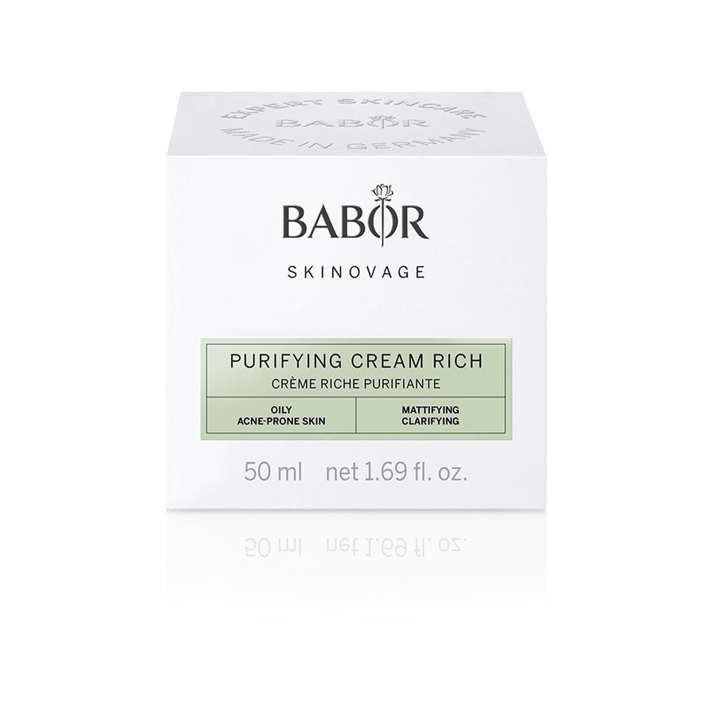 Babor Skinovage Purifying Cream Rich är en högkvalitativ ansiktskräm speciellt utformad för att behandla och förebygga akne. Denna kräm är en del av Babor Skinovage-serien och är särskilt utvecklad för personer med fet eller kombinerad hud som är benägen att utveckla akne.