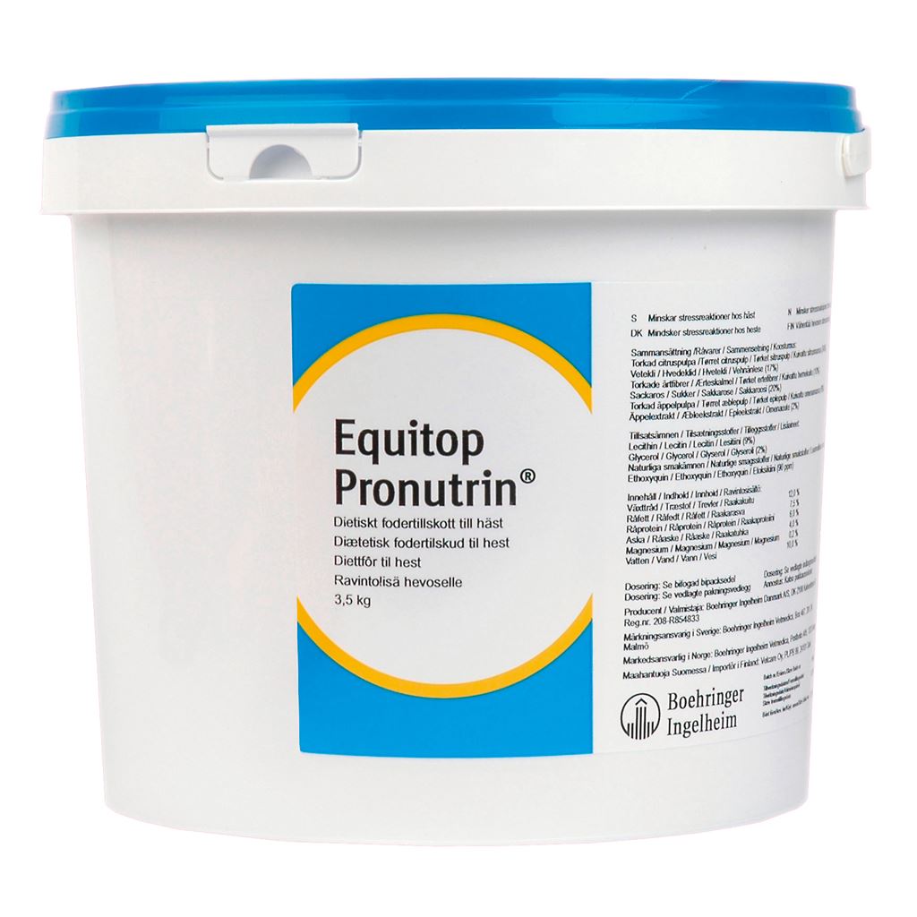 Equitop Pronutrin är det perfekta fodertillskottet för att förbättra din hästs matsmältning. Med sina naturliga ingredienser och förmåga att främja en hälsosam tarmflora och näringsupptag, kan detta tillskott hjälpa till att förhindra matsmältningsproblem och minska risken för kolik. Ge din häst det bästa genom att investera i Equitop Pronutrin.