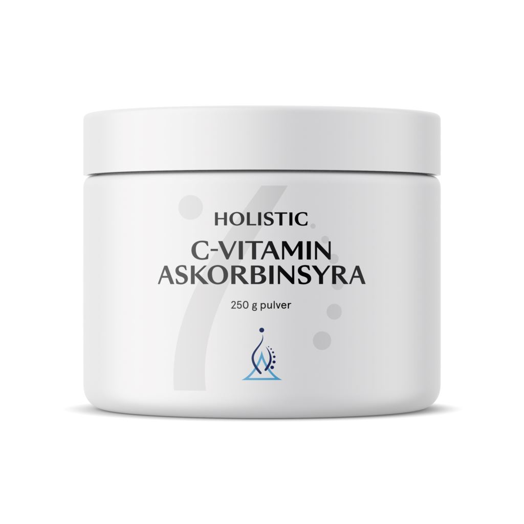 Holistic C-vitamin askorbinsyra är ett kosttillskott som erbjuder en naturlig och effektiv källa till C-vitamin. Med sina många hälsofördelar är C-vitamin en viktig del av en balanserad kost och kan hjälpa till att stärka immunförsvaret, främja kollagenproduktionen och skydda cellerna från oxidativ stress.