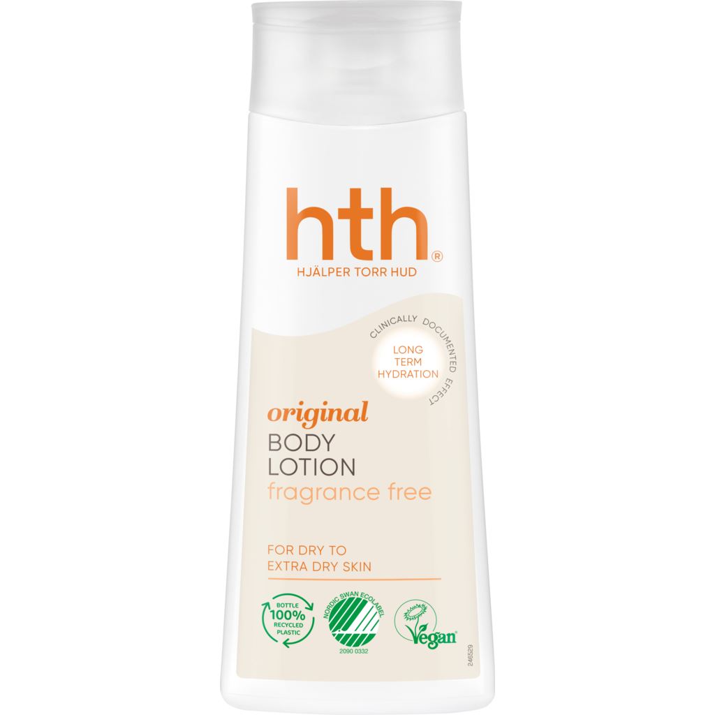 HTH Original Body Lotion är en opafymerad kroppslotion som ger intensiv återfuktning och vård till torr och känslig hud. Med sin opafymerade formula är den skonsam mot huden och passar perfekt för dig med känslig hud eller allergier. Den lättabsorberade konsistensen gör att du kan använda den dagligen utan att den känns kladdig eller fet. Ge din hud den bästa möjliga vård med HTH Original Body Lotion.