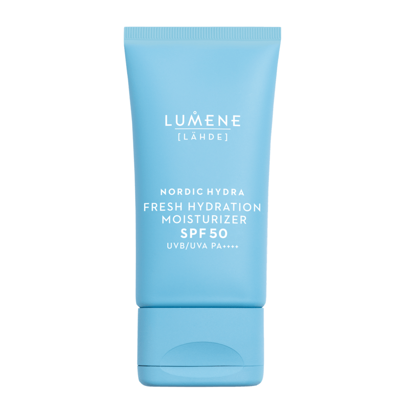 LUMENE Nordic Hydra Fresh Hydration Moisturizer SPF50 är en vegansk ansiktscreme som omedelbart återfuktar och skyddar mot solens farliga UVB- och UVA-strålar. Sammansättningen med ekologisk, nordisk björksav och dubbel hyaluronsyra binder fukten i ansiktet för en fyllig och smidig hud. Lätt konsistens som snabbt absorberas in i huden utan att det känns kladdigt. Passar alla hudtyper.