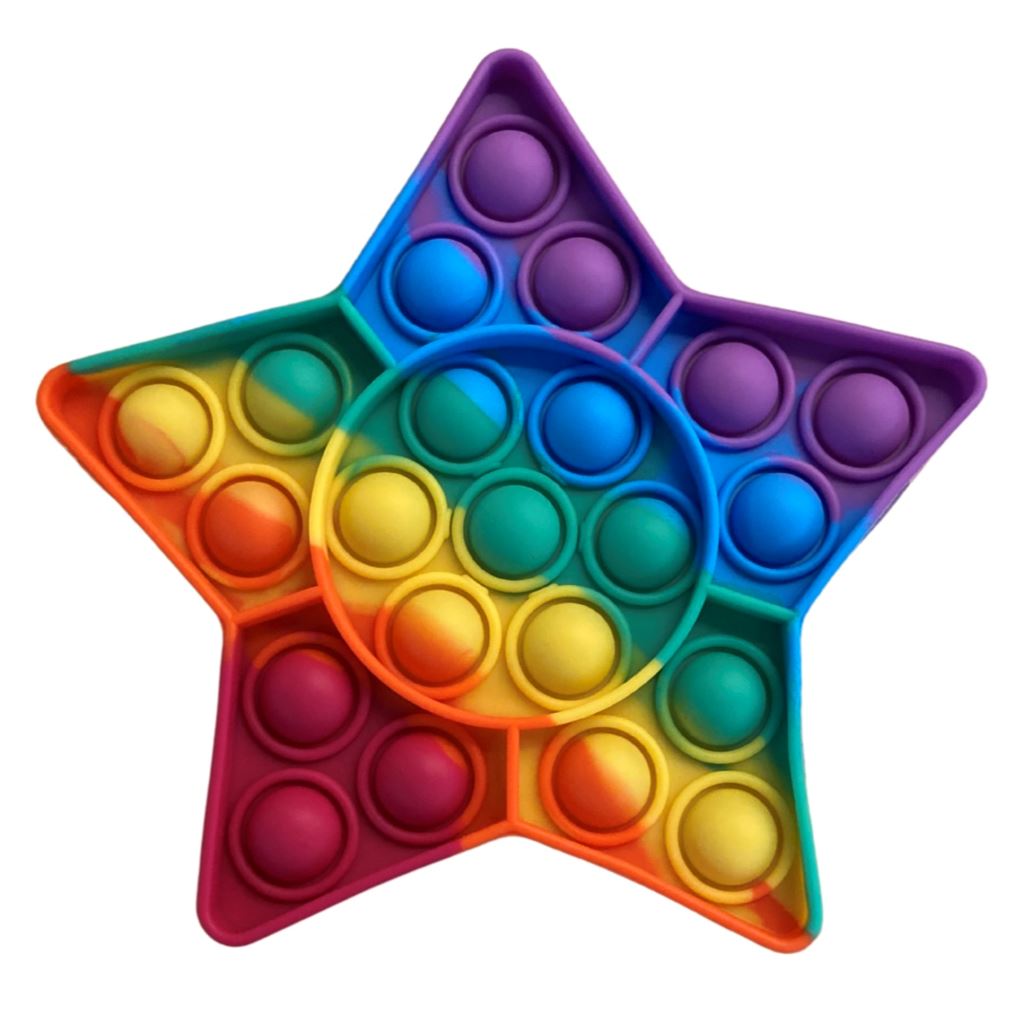 Fidget Pop Stjärna Regnbåge är utformad för att ge en avkopplande och lugnande effekt. Genom att trycka på bubblorna på ytan kan du skapa en tillfredsställande känsla av att "poppa" dem. Detta kan hjälpa till att minska stress och ångest, samt ge en känsla av lugn och ro.