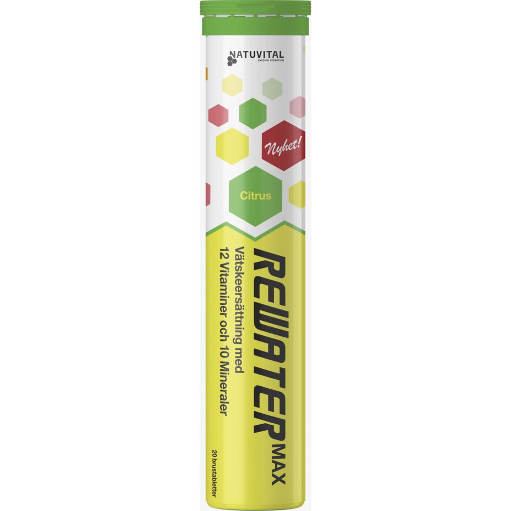 Natuvital Rewater Max Citrus är en snabbverkande vätskeersättning som hjälper till att återställa vätskebalansen i kroppen på ett effektivt sätt. Brustabletten löses upp i vatten och ger en uppfriskande citrussmak som gör det enkelt och trevligt att dricka. Produkten är också lätt att ta med sig och använda vid behov.