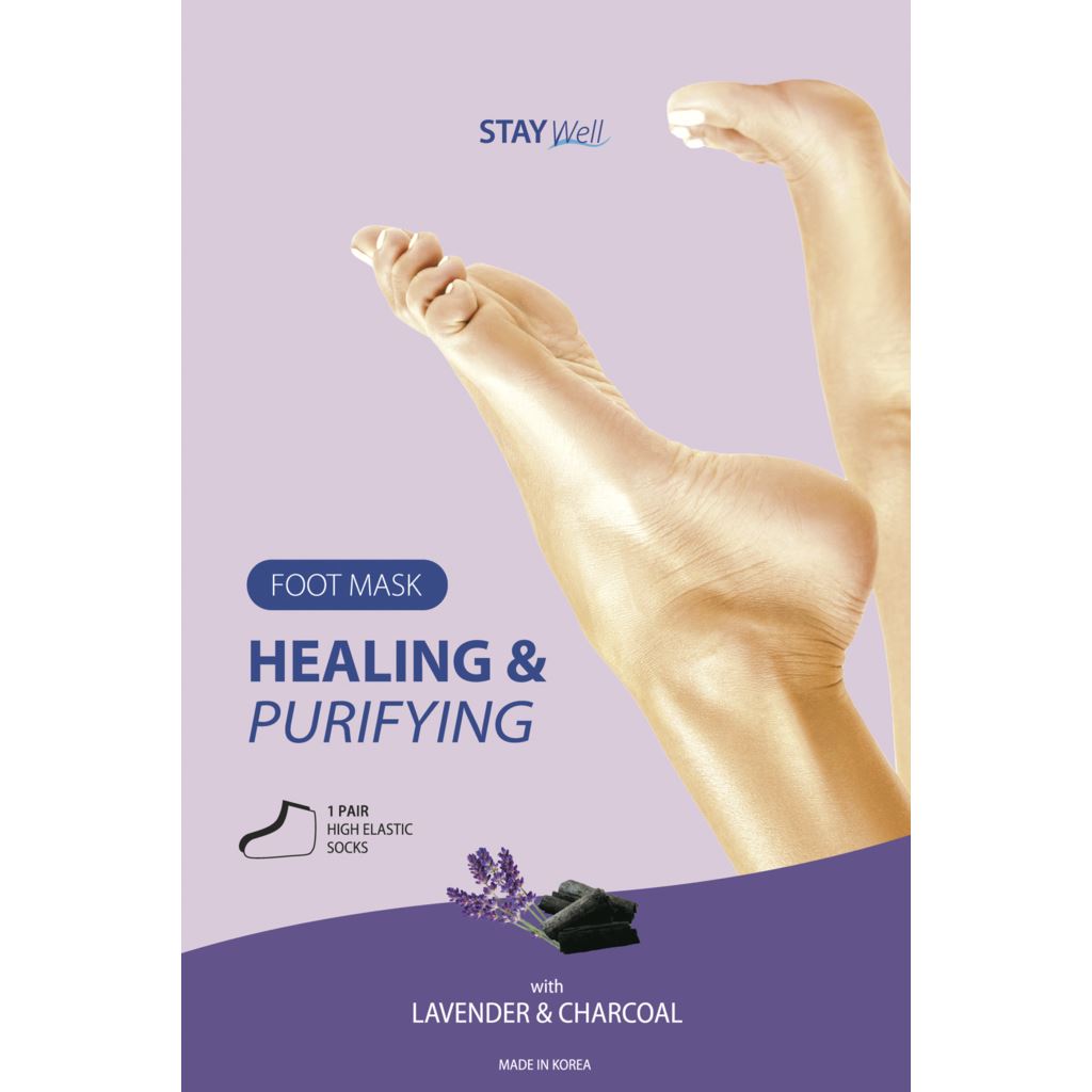 Stay Well Healing & Purifying Foot Mask Lavender Charcoal är en effektiv fotmask som hjälper till att vårda och rena dina fötter. Med en kombination av lugnande lavendel och aktivt kol ger denna fotmask en djuprengörande och återfuktande effekt.