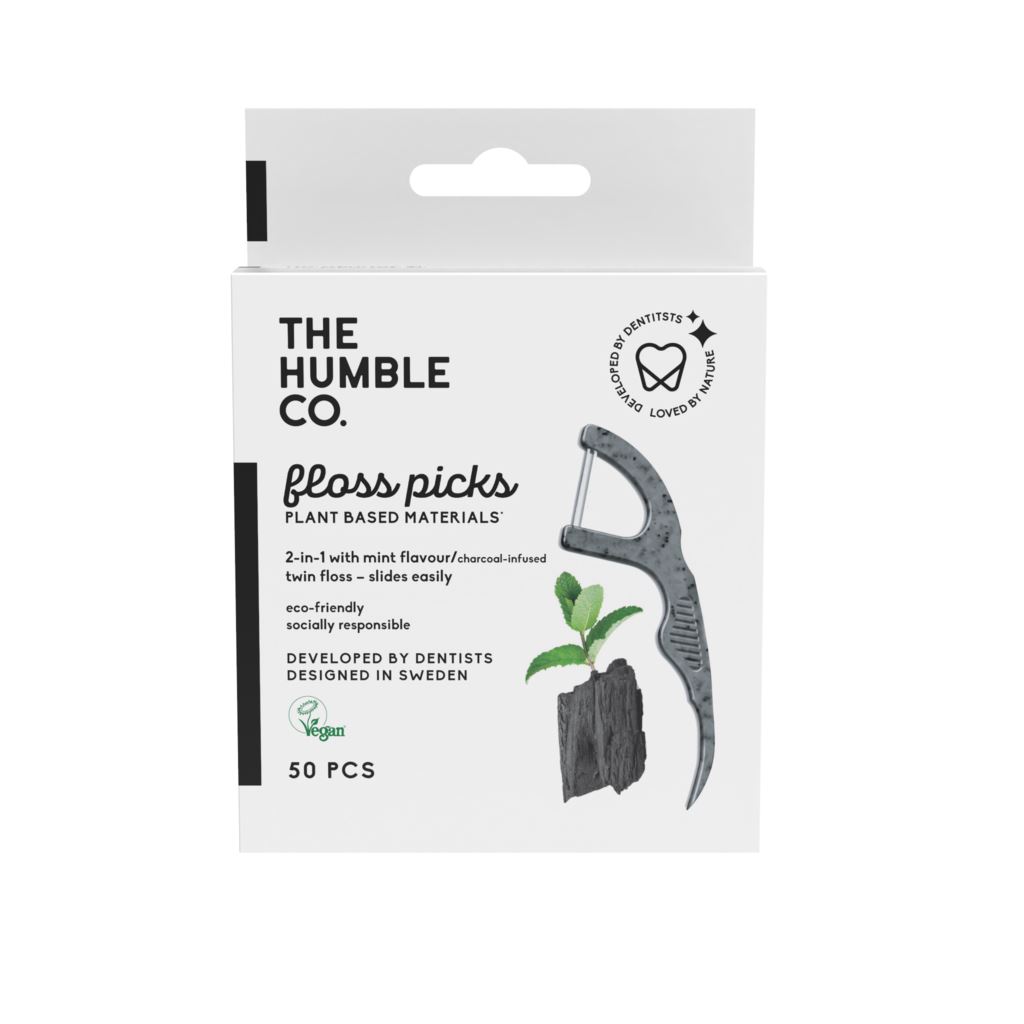 The Humble Co. Floss Picks Original Tandtrådsbyglar Charcoal är en tandtrådsprodukt som är både effektiv och miljövänlig. Dessa tandtrådsbyglar är tillverkade av naturliga material och är perfekta för att rengöra mellanrummen mellan tänderna.
