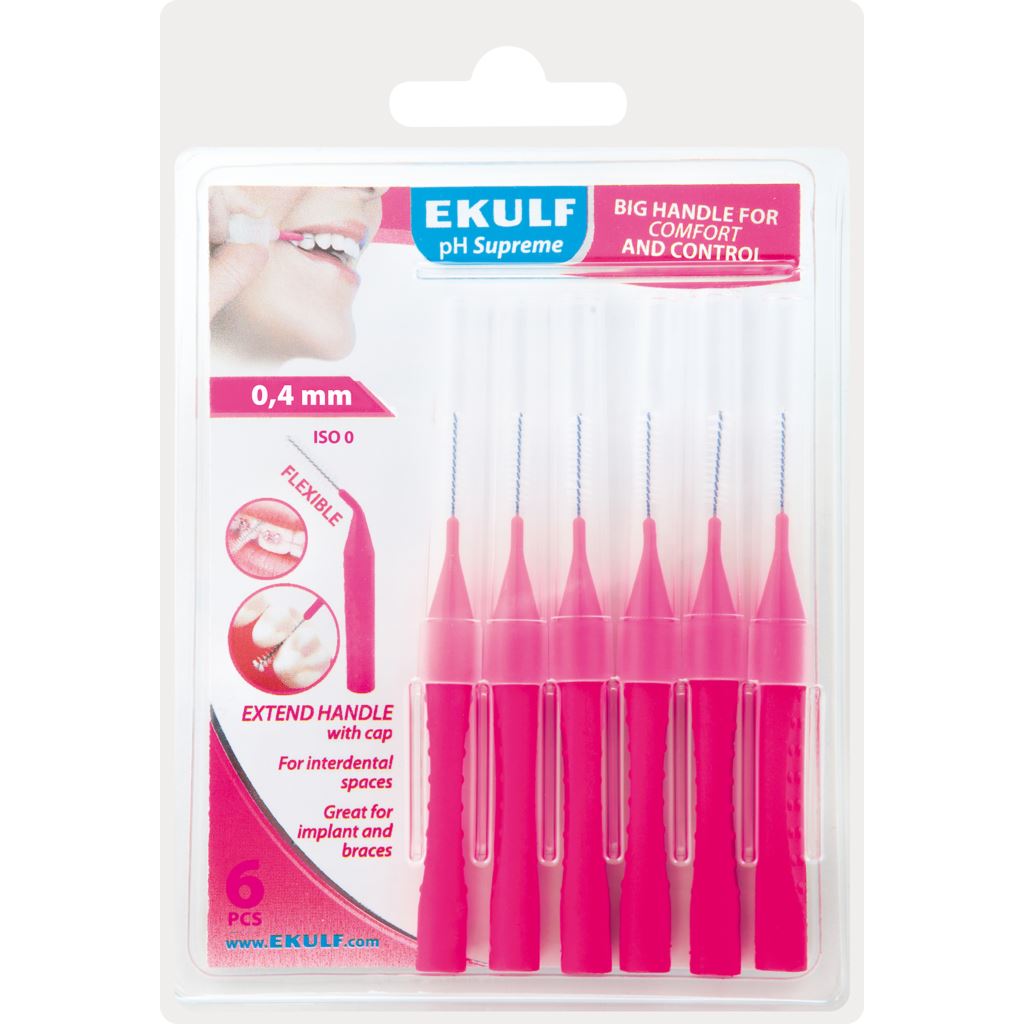Ekulf pH Supreme Mellanrumsborstar är en högkvalitativ produkt som är speciellt utformad för att rengöra mellanrummen mellan tänderna. Dessa borstar är tillverkade av högkvalitativt material och har en diameter på 0,4 mm, vilket gör dem perfekta för att komma åt även de minsta mellanrummen.