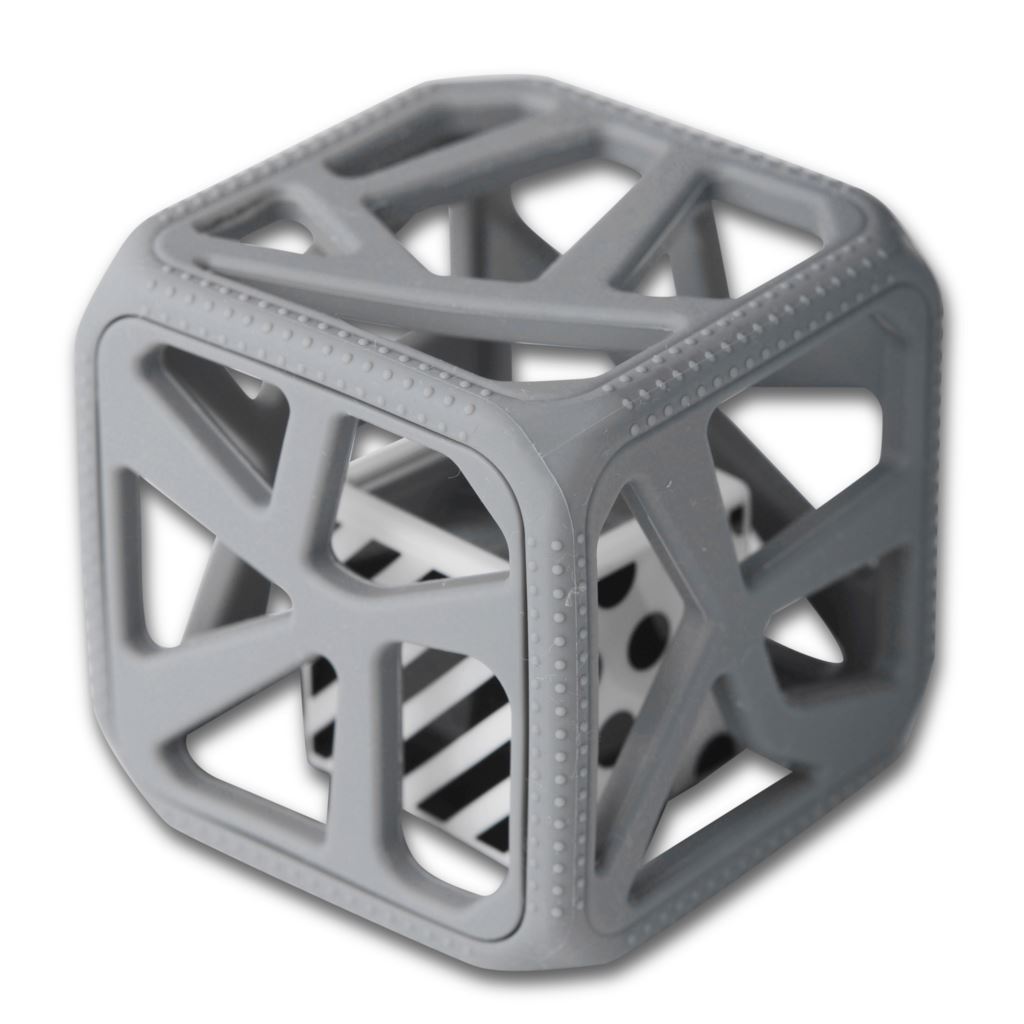 Förutom att vara en hjälp vid tandvård är Chew Cube Dark Grey också en underhållande och stimulerande leksak för ditt barn. Den har olika färger och mönster som lockar barnets uppmärksamhet och stimulerar deras sinnen. Leksaken är också utformad för att vara lätt att greppa och kasta, vilket gör den perfekt för lek och utforskning.